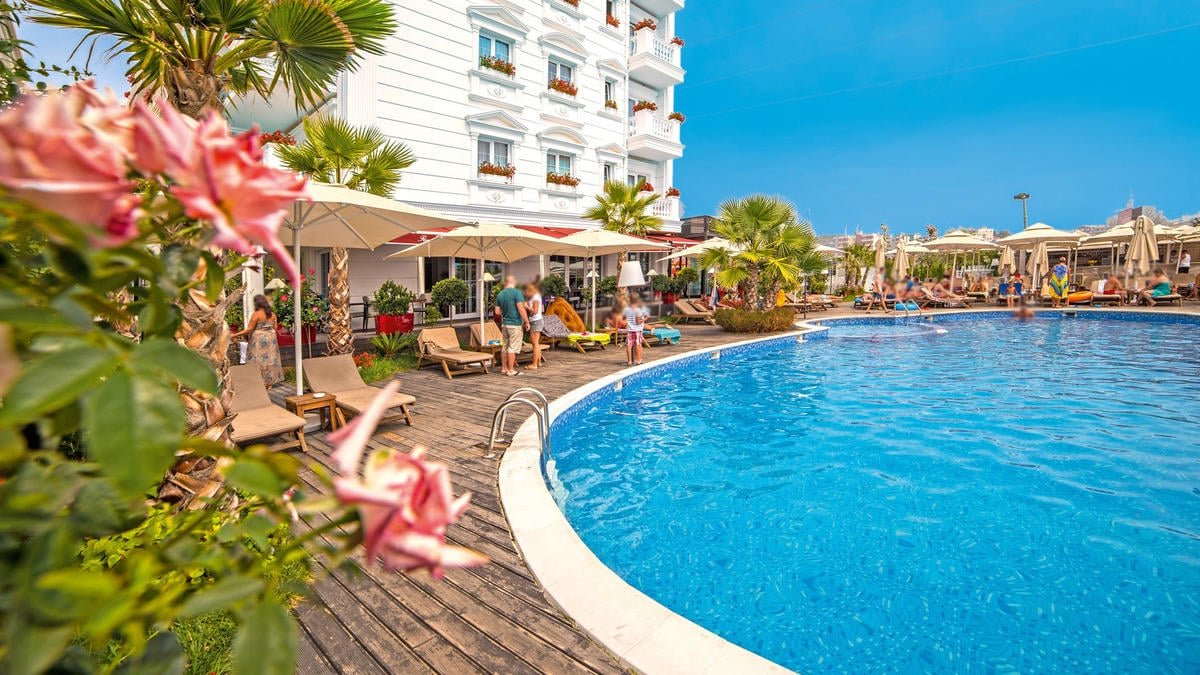 Lobby 24 órás recepcióval, ingyenes WiFi, 1 épület lifttel, 60 fős konferenciaközpont, 2022-ben felújított medencetér, édesvízi úszómedence, gyermekmedence és ingyenes napágyak és napernyők a medencénél, játszótér a gyermekeknek, központi étterem a Flower Garden Hotelben: albán és nemzetközi konyha, 2 à la carte étterem a Flower & Spa szállodában, 2 medence melletti bár: a Flower & Spa szállodában és a Flower Garden szállodában, strandbár.