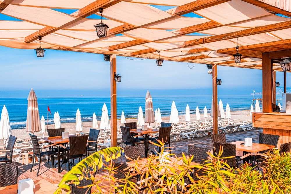 A 150 méter hosszú homokos-aprókavicsos strand 50 m-re található a szállodától, egy alagúton keresztül érhető el.